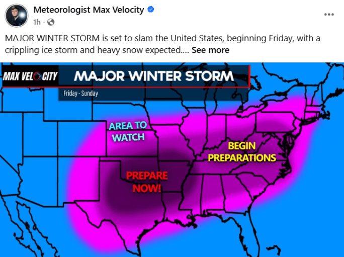 I'm not going to pretend to make a picture for this when more qualified people can do it better. Max Velocity on Facebook and Youtube is my favorite weatherman for big weather events. facebook.com/maxvelocitywx and https://www.youtube.com/c/MaxVelocityWX Depending on how much you follow national weather, you may or may not know about a storm coming to … Continue reading Big Storm Coming this Weekend